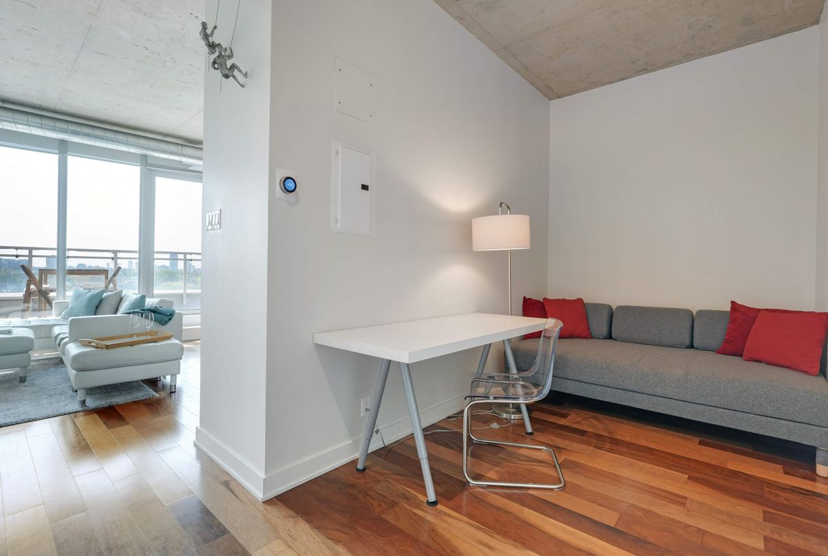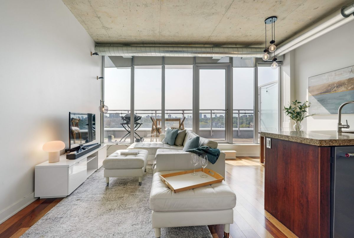 Rarely Available Penthouse with Stunning Terrace in the Heart of Downtown Ottawa Welcome to this impeccably maintained 1-bedroom + den penthouse in the highly sought-after Central Condominiums. Offering a sleek, modern loft-inspired design, this exceptional suite boasts 694 sq. ft. of thoughtfully designed interior space and an expansive 149 sq. ft. west-facing terrace perfect for enjoying breathtaking sunset views or creating your own urban garden with a hose bib and electrical outlet already in place. Inside, you'll find 10-foot ceilings, rich hardwood flooring throughout, upgraded window coverings, and ample custom storage. The open-concept kitchen is both stylish and functional, ideal for entertaining or quiet evenings at home. The spacious primary bedroom features generous closet space, while the versatile den serves perfectly as a home office or cozy lounge area. Residents of this well-managed building enjoy luxury amenities that rival the best in the city, including: Two fitness centers (including a yoga room) Outdoor pool with sun deck and two-sided fireplace One of Ottawa's nicest common lounges, complete with a billiards area Two BBQ terraces Private movie theatre Two elegant party rooms Full-time concierge service Heated underground parking with visitor parking Located just steps from Bank Street, Elgin, Lansdowne Park, and the Rideau Canal, with Starbucks, Shoppers Drug Mart, and LCBO right downstairs, this is urban living at its finest. Pets are welcome (with a few restrictions), and the unit includes one indoor parking space and a convenient storage locker. Furniture is available for purchase directly from the seller.